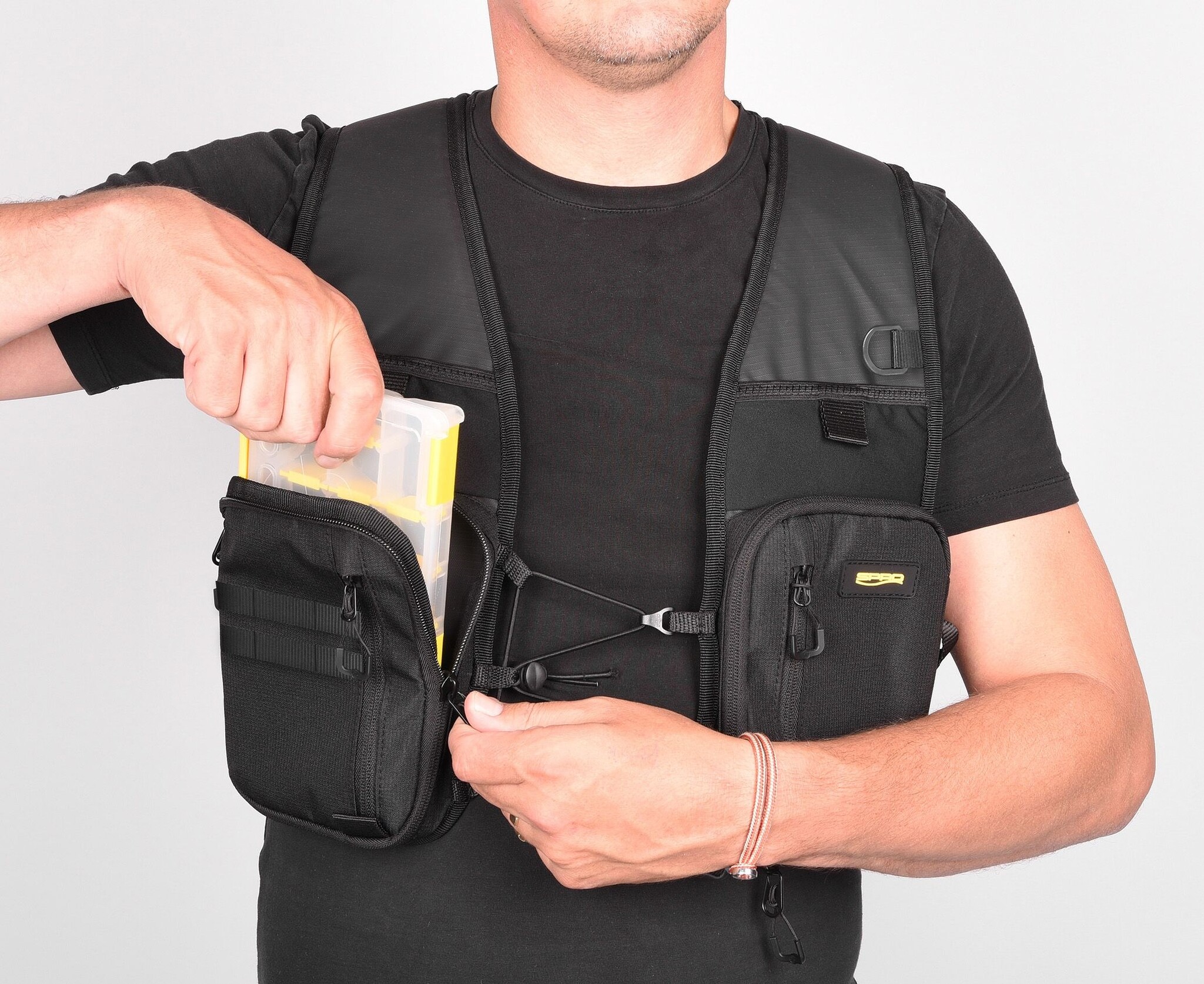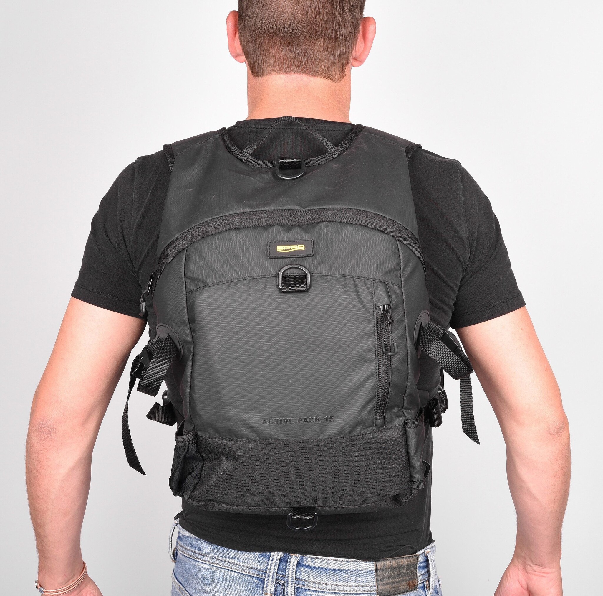 Der SPRO Active Pack 15 ist ein Rucksack mit Stauraum auf der Brust, ideal für das aktive Kunstköderangeln. Der Rucksack selbst eignet sich perfekt für Kleidung, Essen und zusätzliche Ausrüstung. Die beiden vorderen Taschen enthalten sowohl ein abnehmbares EVA-Köderbrett als auch eine TBX 25S Tacklebox (17,5 cm x 12,5 cm x 2,5 cm). Der Active Pack 15 ist ideal für das ultraleichte und Watangeln, da der Rucksack selbst relativ hoch auf dem Rücken sitzt. Der Active Pack 15 kann dank der verstellbaren elastischen Brustclips leicht geöffnet und abgenommen werden. Die Seiten können an den Brustumfang angepasst werden. An den erforderlichen Stellen sind D-Ringe angebracht, um Zubehör anzuhängen.
