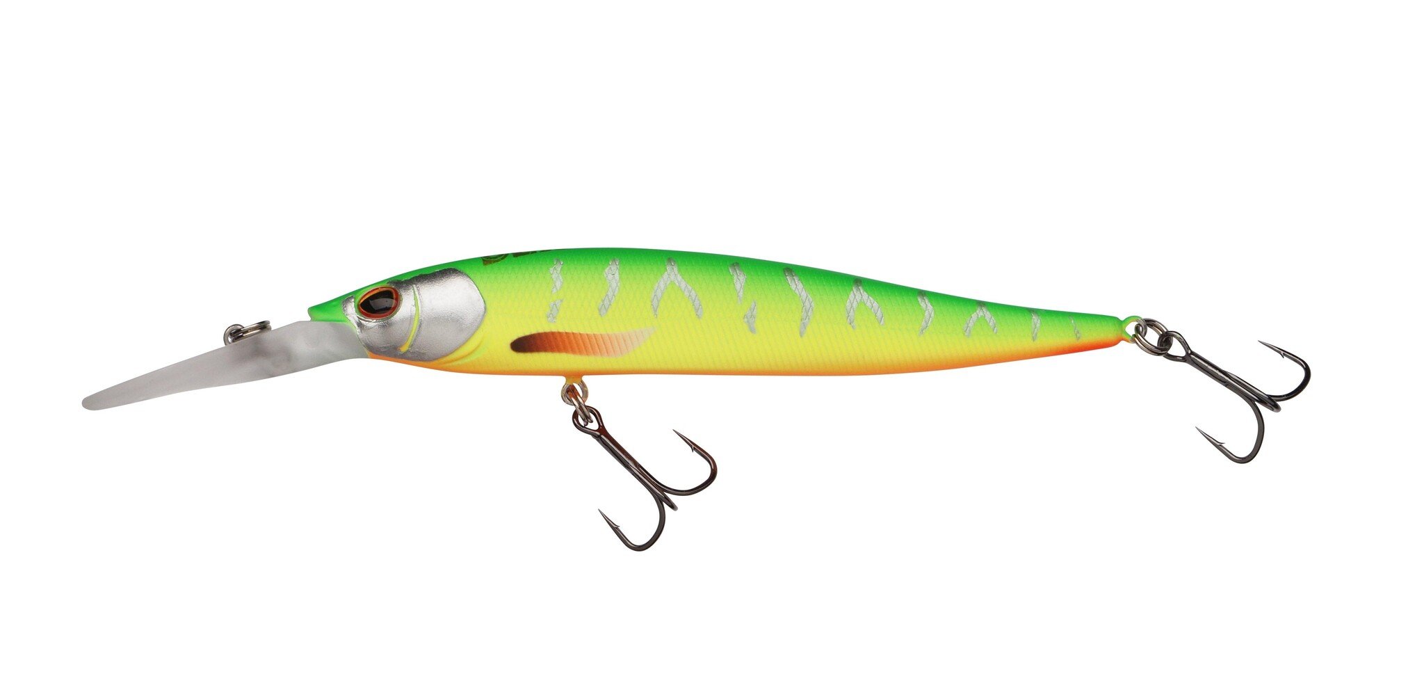 Maximale Darting-Action mit einfachen 180-Grad-Kopfbewegungen und starkem Side-Flash beim Jerken. Zentrale Messinggewichte und ein Tungsten Weight Transfer System sorgen für erhöhte Wurfweite. Der DEX Stunna ist mit ultra scharfen Fusion19™ Drillingen ausgestattet. Mit 10 cm Länge, 12 g Gewicht und einer Lauftiefe von 1,8 bis 3,2 m eignet sich dieser Köder ideal für flache Bereiche oder wenn Fische höher im Wasser stehen. Die Sinkrate beträgt 30 cm in 8 Sekunden, mit langsamer Sinkphase und Shimmy-Aktion in der Pause sowie knackigen Darting-Bewegungen beim Jerken.
