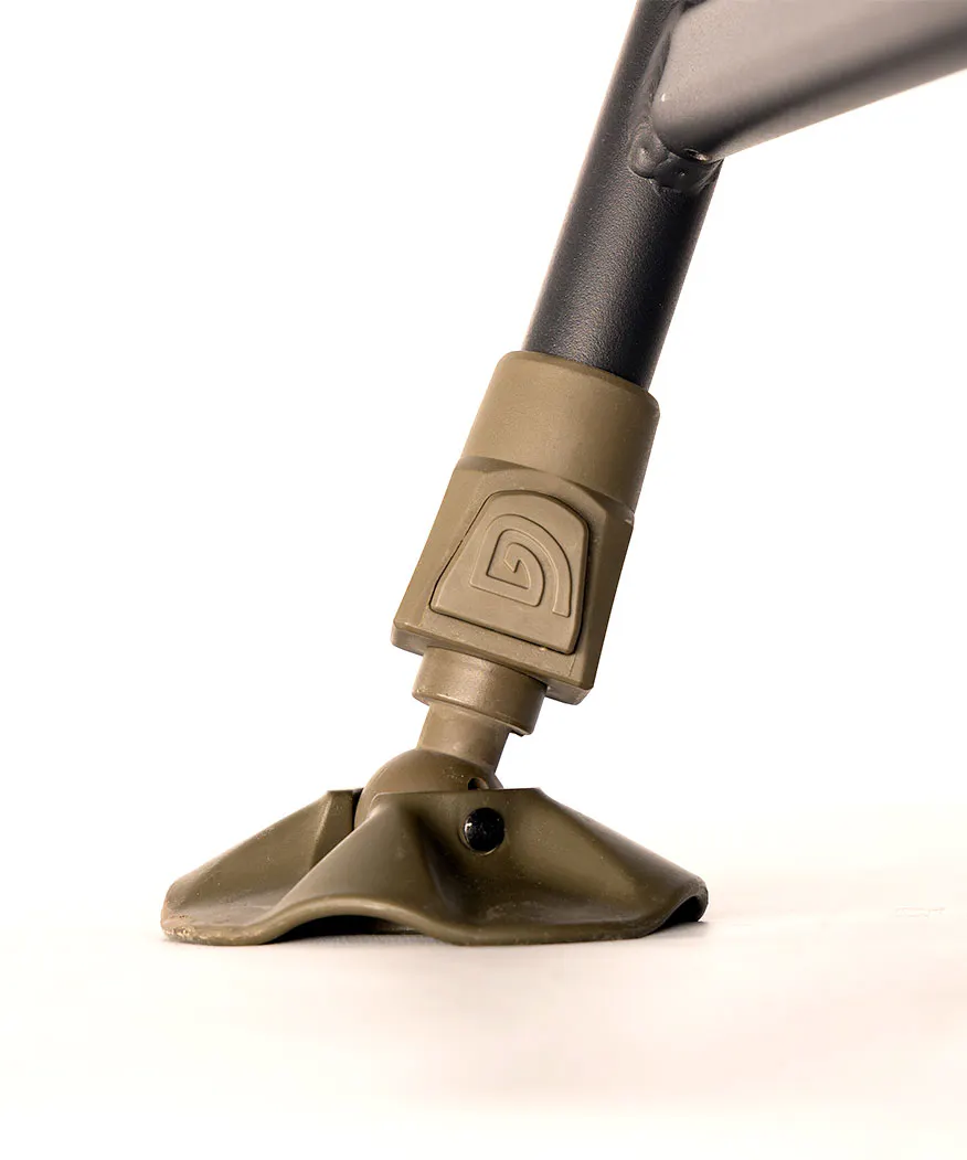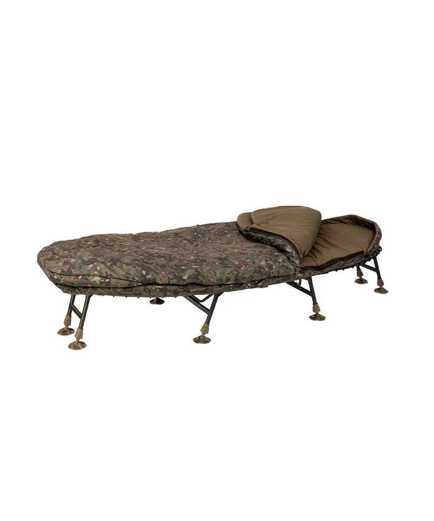 Acht federbelastete, verstellbare Beine mit drehbaren Schlammtellern sorgen für Stabilität auf jedem Untergrund. Die doppellagige, umkehrbare Schlafsackkonstruktion macht das System für den ganzjährigen Einsatz geeignet. Mit seinem exklusiven Trakker-Camo-Design ist dies das komfortabelste Schlafsystem, das Trakker je entwickelt hat.