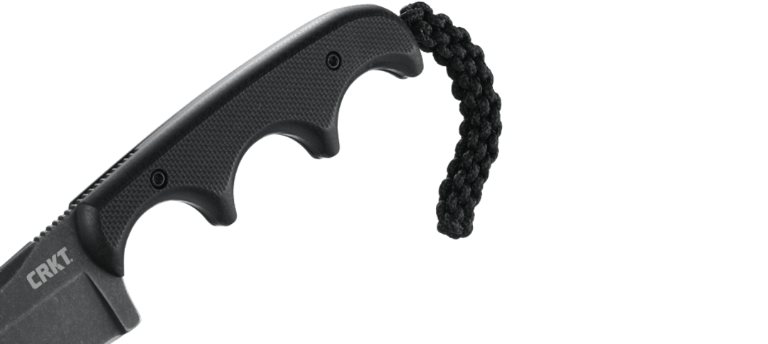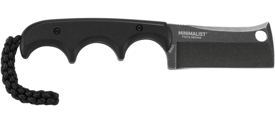Das CRKT Minimalist Cleaver Blackout 2383K ist ein äußerst ergonomisches Neck Knife, entworfen von Alan Folts. Besonders auffällig ist der Griff mit seinen Fingerrillen, die für einen sicheren Drei-Finger-Griff sorgen. Der kleine Finger liegt auf der Fangriemenöse, sodass das Messer mit der ganzen Hand kontrolliert werden kann. Auf dem Klingenrücken sorgt Jimping für zusätzliche Kontrolle.