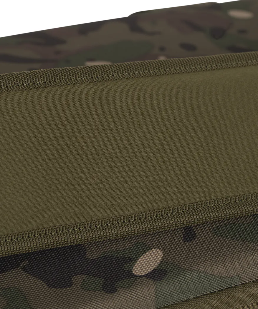 Auf der Rückseite befinden sich Webbing-Schlaufen für die alternative Befestigung des Schultergurts – ideal, um die Tasche an einem Barrow oder Boot zu sichern. Der PVC-Boden ist wasserdicht und schützt den Inhalt auch unter nassen Bedingungen. Das strapazierfähige n-dura Performance-Material im Trakker-Camo-Design rundet das Ganze ab.