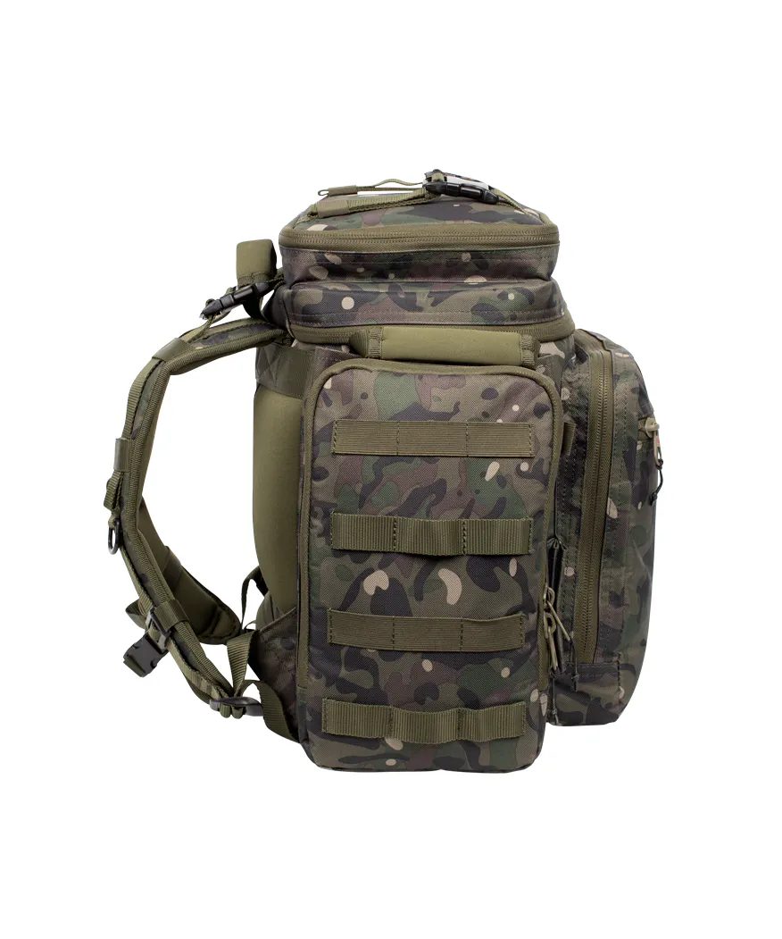 Der Trakker NXC Camo Scout Rucksack wurde für den modernen, mobilen Karpfenangler entwickelt, der Organisation und Komfort vereinen möchte. Mit kompakter Stellfläche, aber großem Fassungsvermögen ist dieser Rucksack ideal für Angler, die schnell von Platz zu Platz wechseln.