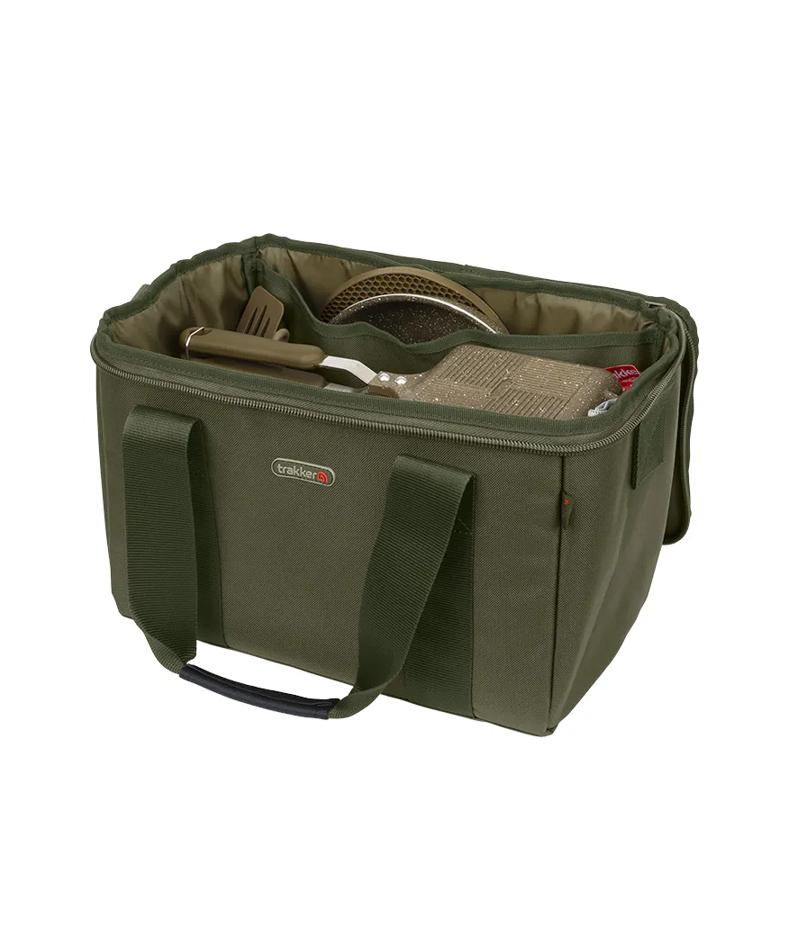 Die Trakker NXG Cookware Bag wurde speziell entwickelt, um Kochgeschirr und Zubehör ordentlich und sicher zu verstauen. Das gepolsterte Innenfutter schützt den Inhalt zuverlässig, während drei Innentaschen dabei helfen, alle Gegenstände sauber zu organisieren und voneinander zu trennen.