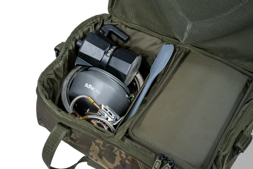 Die Subterfuge Food Bags verfügen über ein durchdachtes zweiteiliges System, bei dem Kochgeschirr, Becher und Besteck von Milch und frischen Lebensmitteln getrennt bleiben. Das isolierte Hauptfach hält die Lebensmittel kühl und frisch – perfekt für längere Sitzungen am Wasser.