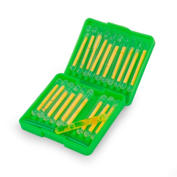 Hochwertige Knicklichter, die für eine langanhaltende Leuchtkraft sorgen und ideal für das Nachtangeln geeignet sind. Kompatibel mit den meisten Zebco Posen, die für Knicklichter, Glöckchen oder anderes Zubehör vorbereitet sind. Lieferung inklusive Gummihalterung für eine einfache Befestigung.