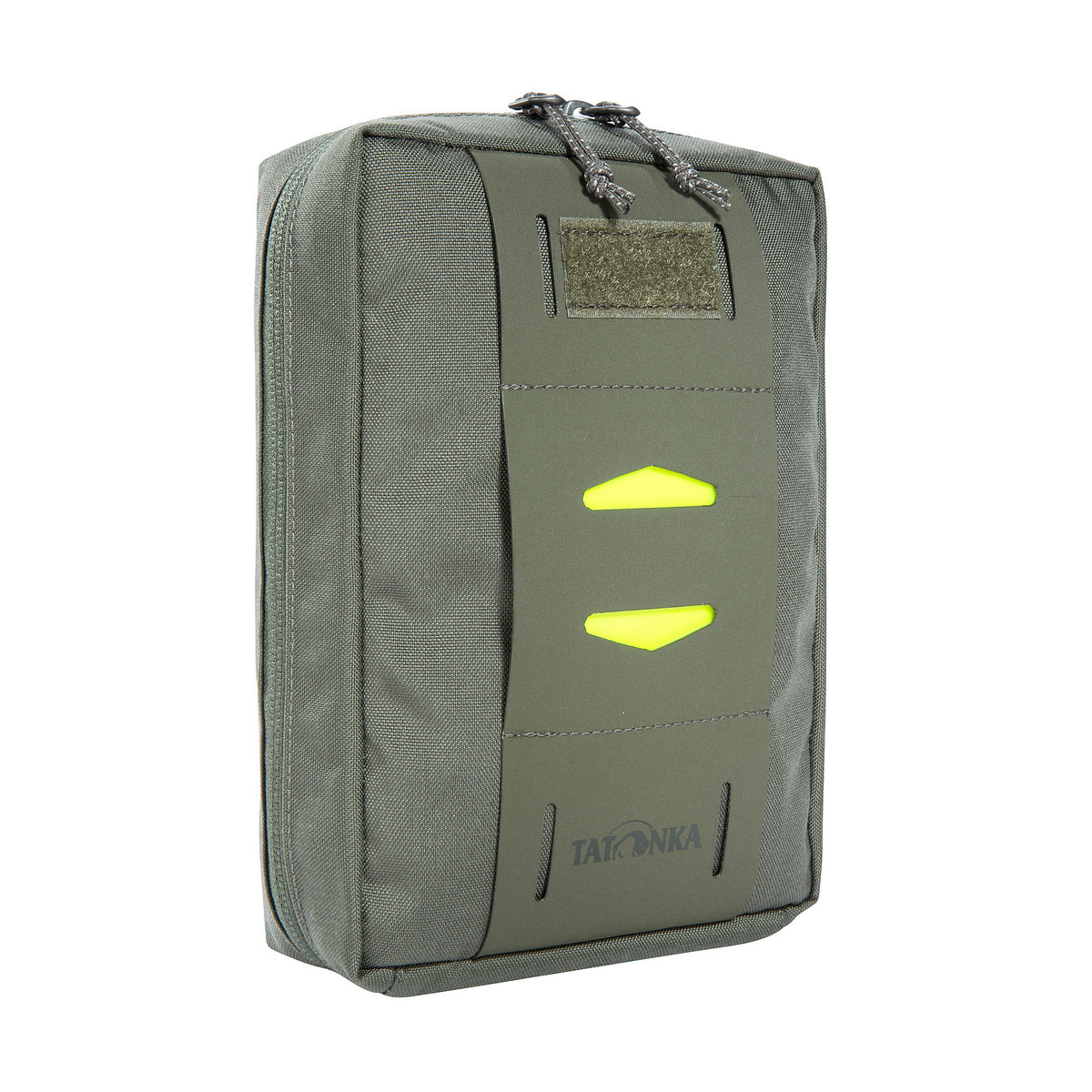 Das Innenleben ist übersichtlich gestaltet mit Reißverschluss- und Steckfächern sowie elastischen Schlaufen. Dank des umlaufenden Reißverschlusses kann die Tasche komplett geöffnet werden. Das modulare Befestigungssystem macht sie kompatibel mit Tatonka-Rucksäcken und Molle-Systemen.