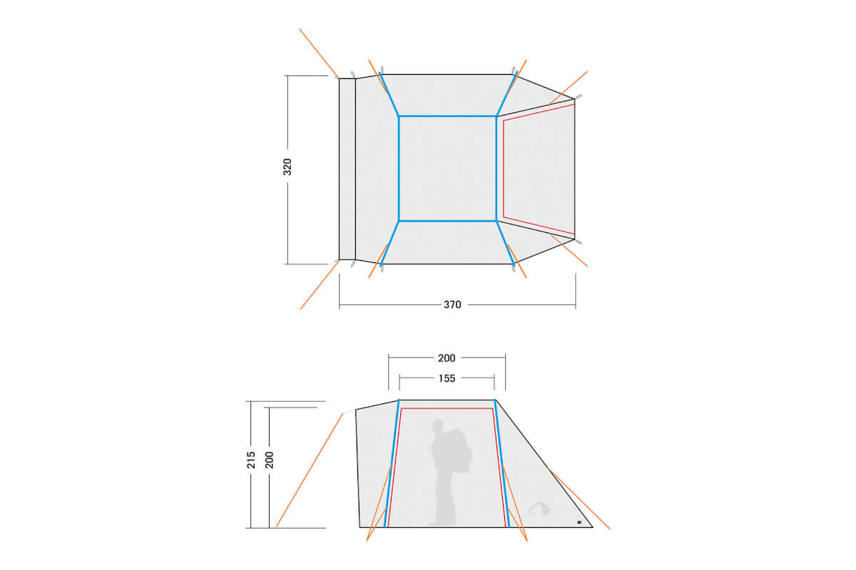 Eingänge Außenzelt: 1 (mit Moskitonetz)