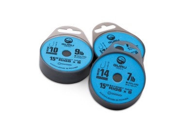 Available in 4" and 15" lengths, they suit various situations and bait choices. The 4" rigs come on rig boards, and the 15" rigs on spools that fit perfectly in the Guru Rig Boxes.