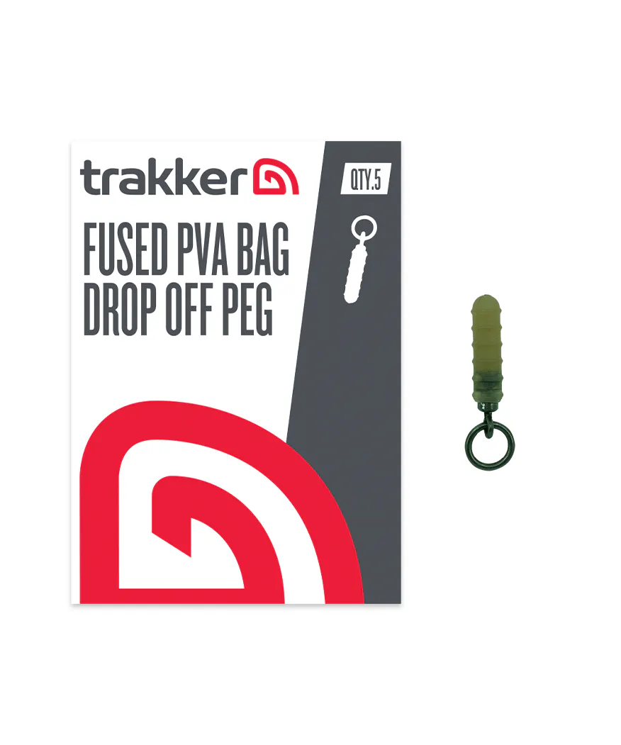 Keywords: Trakker, Fused PVA Bag Drop Off Peg, solid bag system, drop-off peg, carp fishing, inline lead, ring swivel, end tackle, rig accessory, camouflage