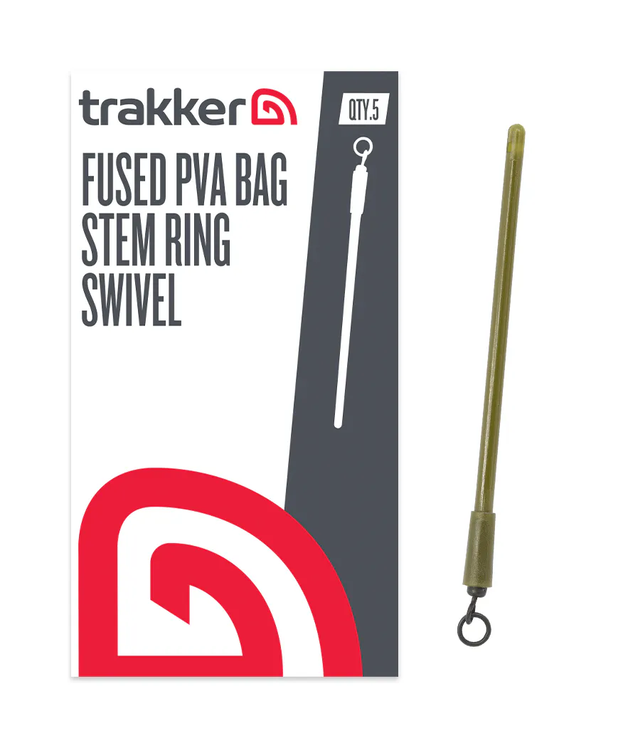 Keywords: Trakker, Fused PVA Bag Stem Ring Swivel, solid bag stem, PVA bag system, inline lead stem, carp fishing, ring swivel, end tackle, rig accessory, camouflage