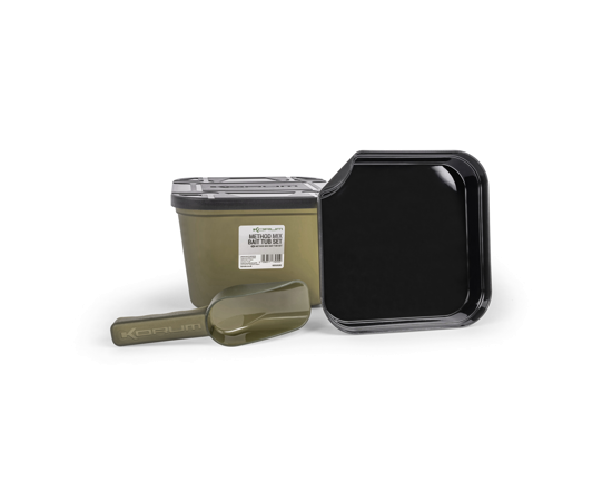 The Korum Method Mix Bait Tub Set is perfect for mixing smaller quantities of groundbait or pellets for feeder fishing. It comes with an inner tub to keep bait separated and a special small scoop that allows for neat and efficient mixing without mess.