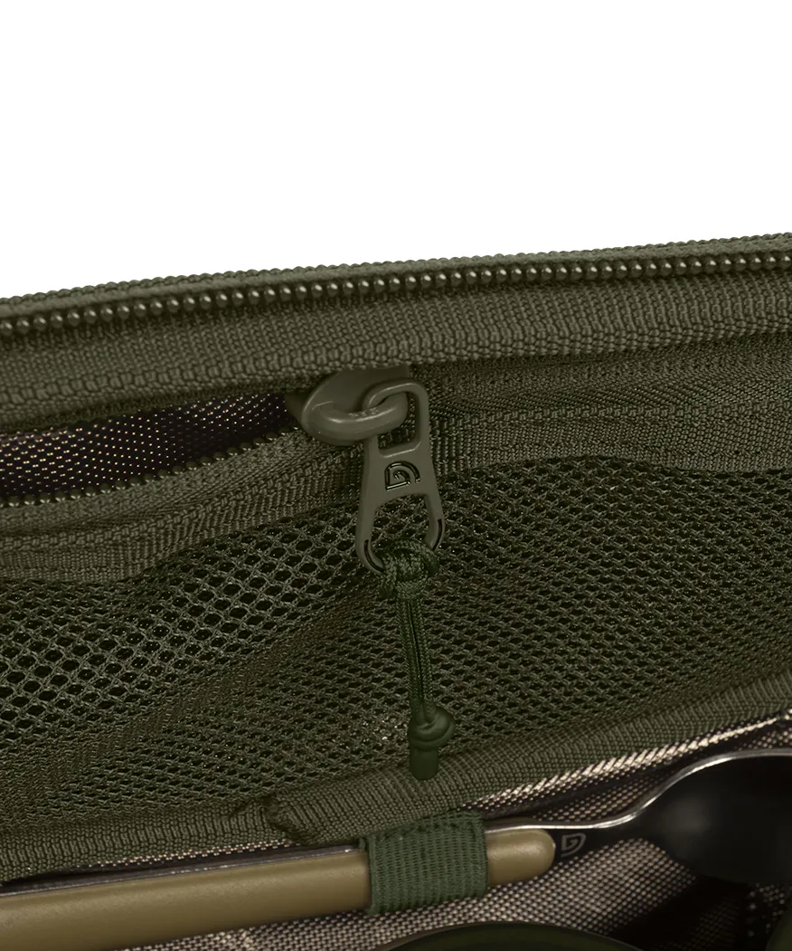 It comes equipped with two plastic cups and a teaspoon – perfect for sharing a brew on the bank. Also included are three green Glug Pots, ideal for storing tea, coffee and sugar. An internal heavy-duty mesh pocket with zip provides space for items such as a lighter or drink sachets.