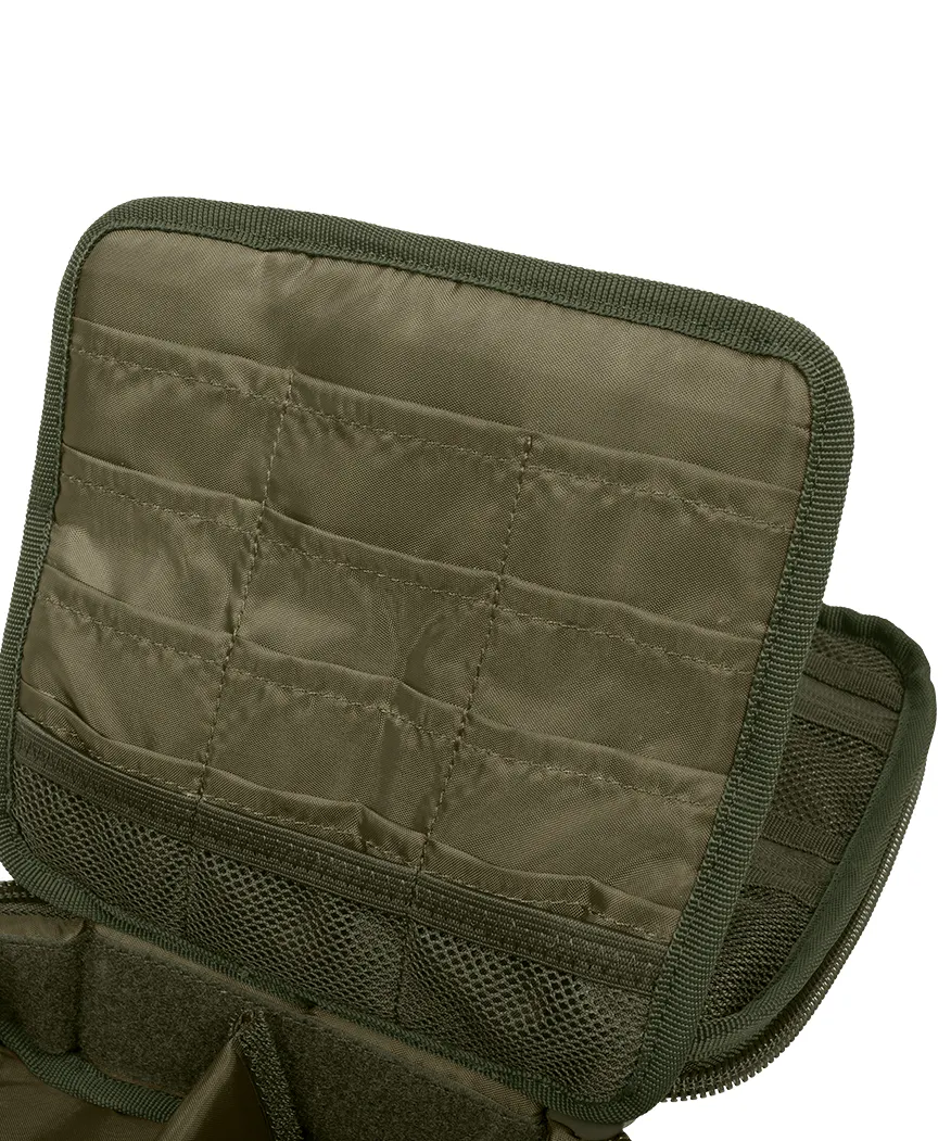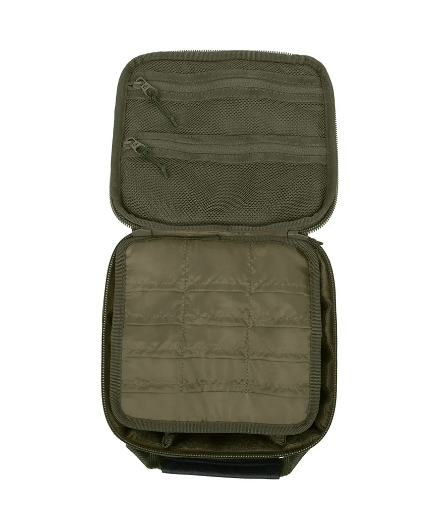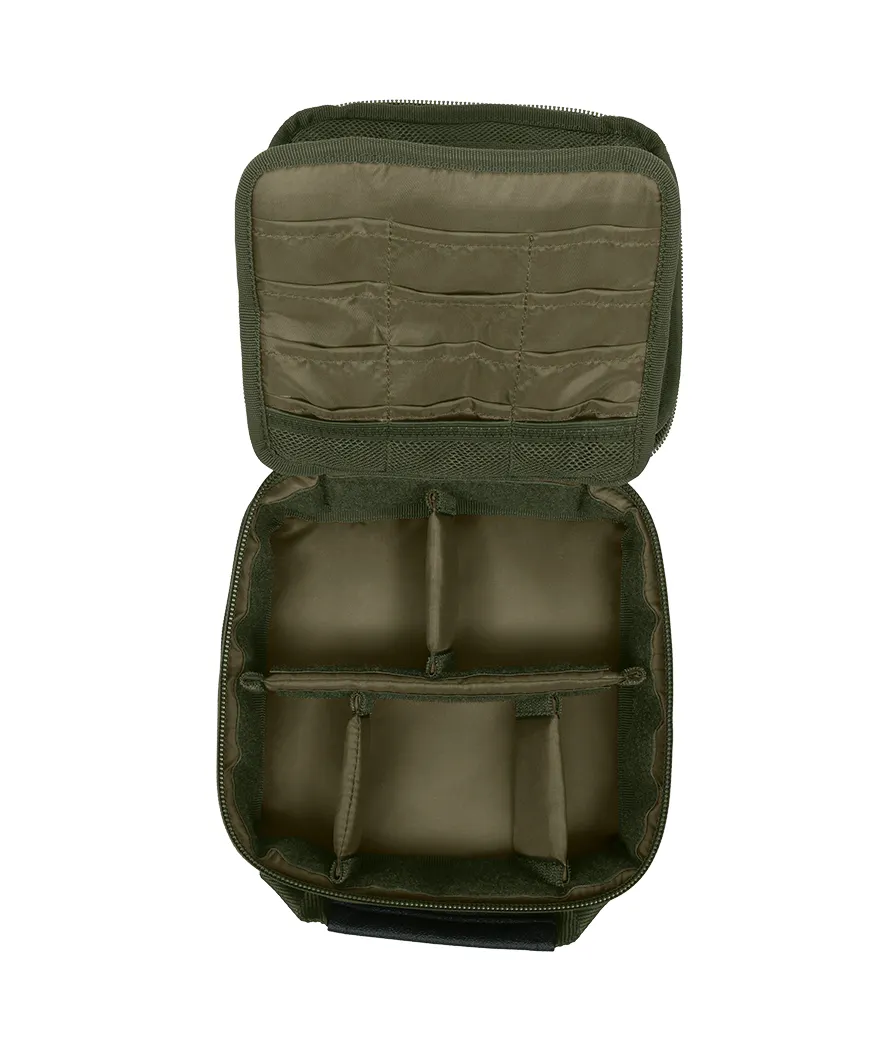 The main compartment features a flexible layout with one large and three smaller dividers, while the central divider includes twenty-four end tackle pockets for hooks, swivels and other small items. Additional mesh pockets provide extra storage, and the twin heavy-duty zips ensure easy access. A sturdy grab handle makes it easy to lift the bag in and out of larger carryalls or rucksacks.