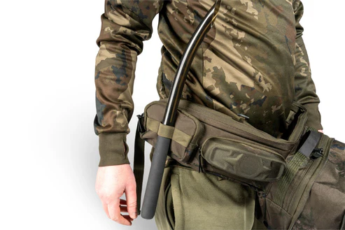 • Double elastic loops and external holder for compact landing net, banksticks, alarms or throwing stick