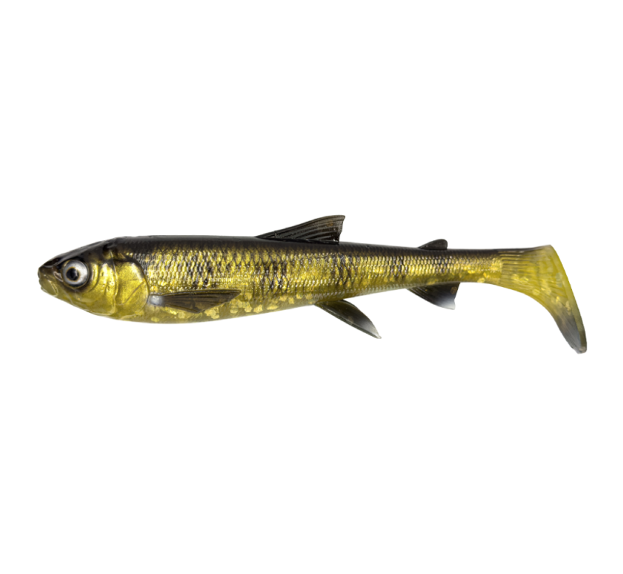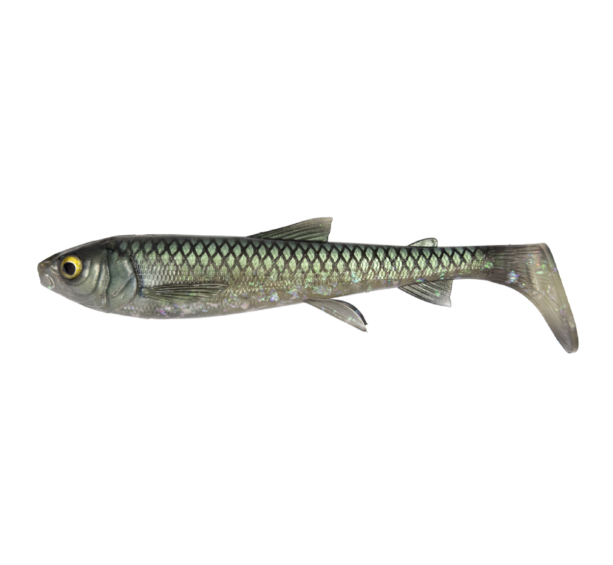 Dit losse peddelstaartaas is gebaseerd op de scan van een echte witte vis en heeft onberispelijke details en een fantastische rol- en trapactie. De omvangrijke kop en het voorlichaam duwen veel water en geven het kunstaas een grote stabiliteit op ondiep tuigage. De gearticuleerde en superrealistische vinnen voegen geweldige secundaire actie toe aan de grote schoppende peddelstaart, die ook een luidruchtige glazen rammelaar bevat voor extra aantrekkingskracht. Gemaakt van superzacht PVC-materiaal met verbluffende kleuren en een opvallende geur.