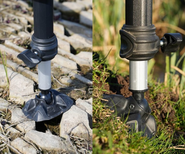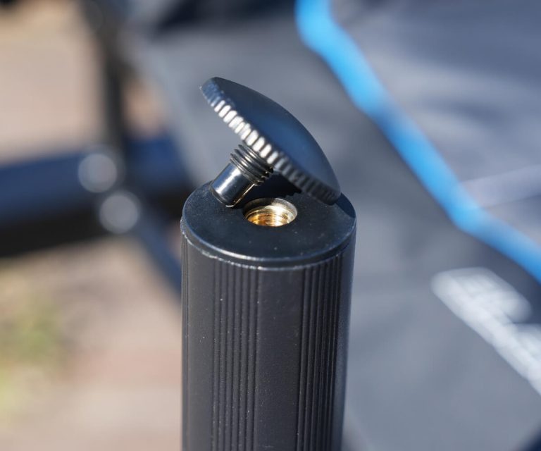 Een traploos verstelbare rugleuning maakt het mogelijk de zithouding perfect af te stemmen op de situatie, of je nu achterover wilt leunen of rechtop wilt zitten. Het robuuste aluminium frame met vier telescopische poten van 36 mm biedt stabiliteit op alle ondergronden, terwijl brede modderpoten zorgen voor extra grip.