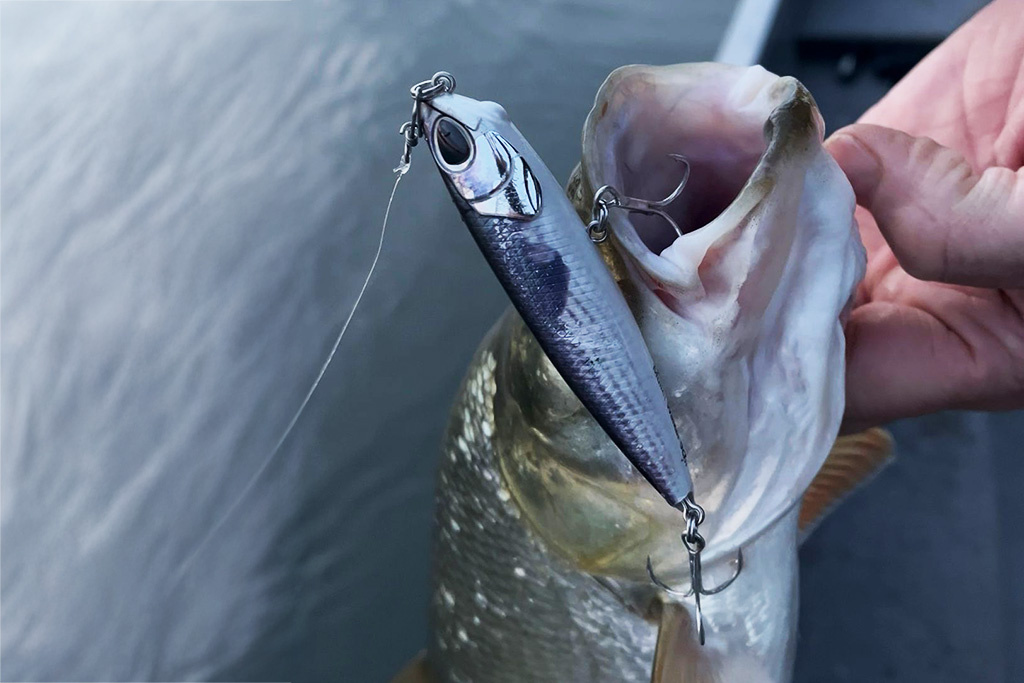 De populairste techniek bij topwater is de zogenaamde “walk the dog”: korte tikjes met de hengel terwijl je binnenhaalt. Hierdoor beweegt het kunstaas zenuwachtig in een zigzaggende beweging over het water. Als een prooivisje in paniek, en dát triggert roofblei.