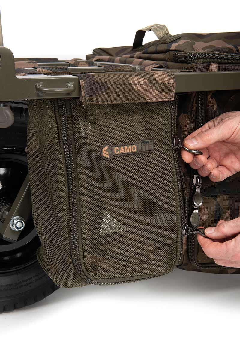 Geleverd met camo Under Barrow Bag die gemakkelijk in het centrum van het frame is te 'droppen' en compatibel is met de nieuwe Fox Camolite luggage.
