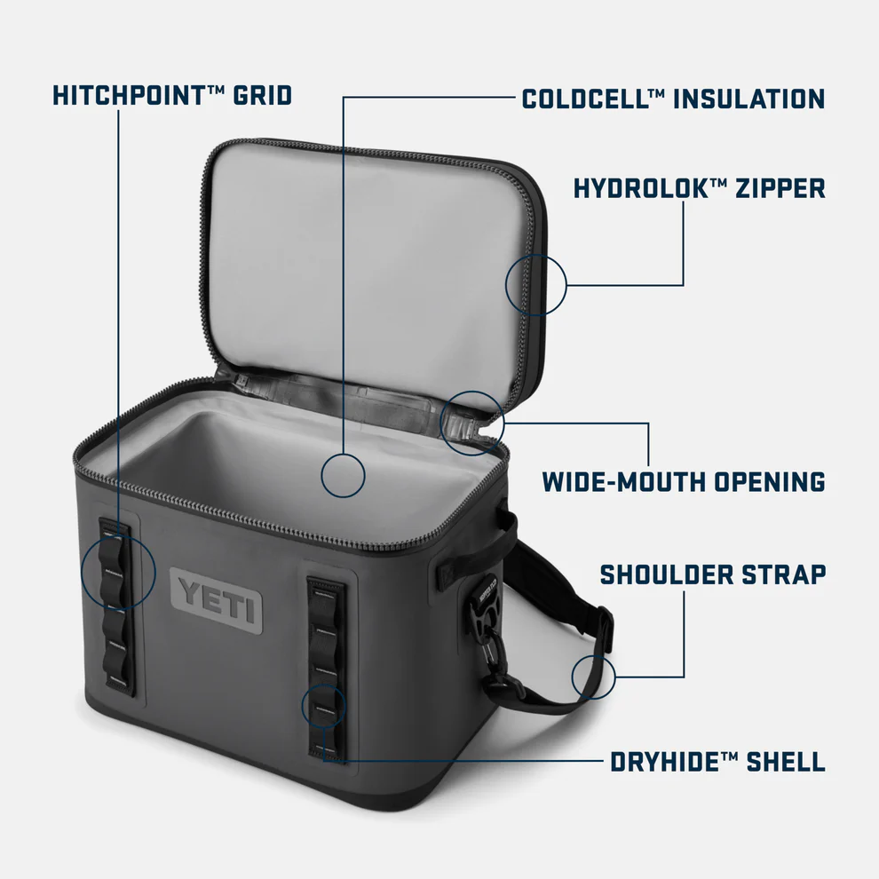 YETI, Hopper Flip 18, Charcoal, soft cooler, lekvrij, vacuum insulation, ColdCell, Daytrip, koeltas, outdoor koeler, bankside lunch carrier