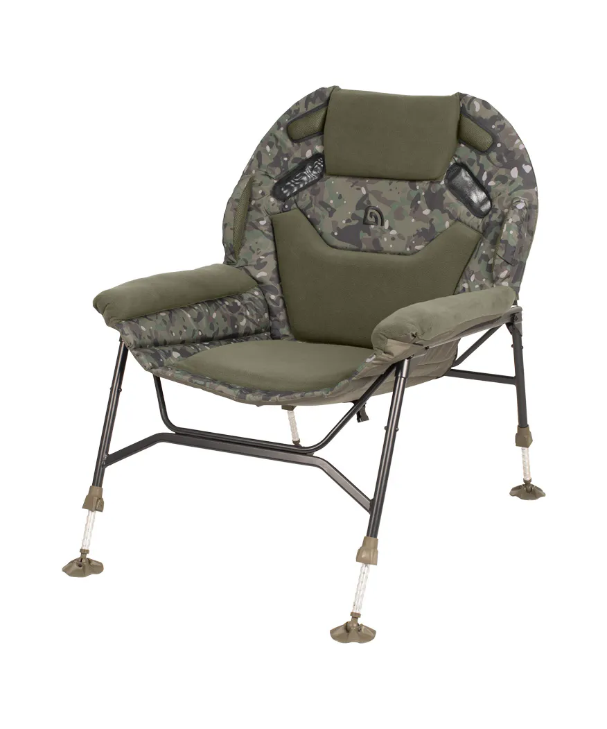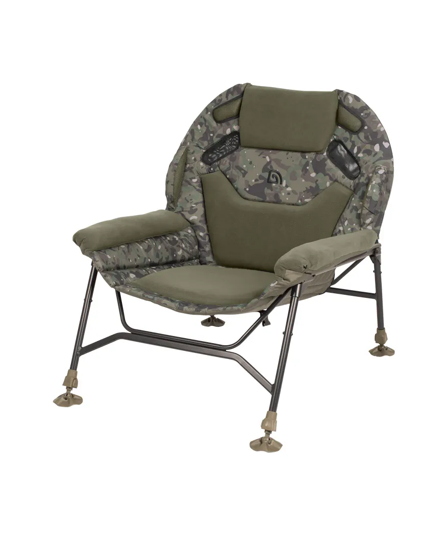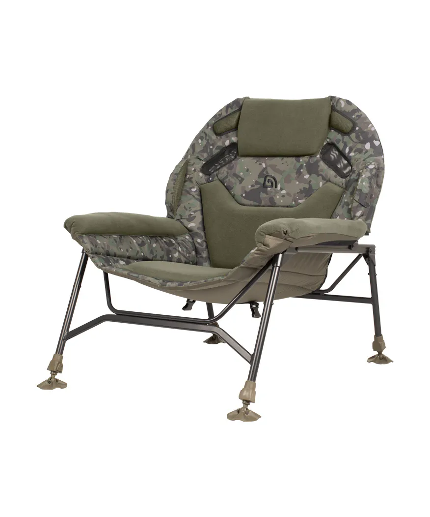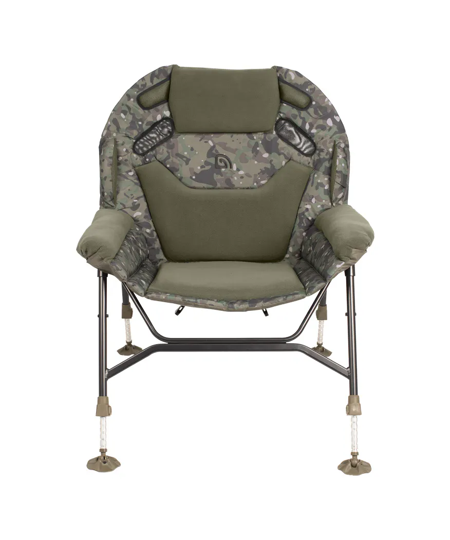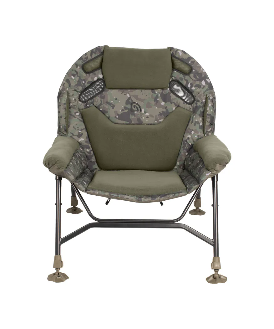 De Trakker Levelite Camo Colossus Chair is het vlaggenschip van de bekroonde Levelite-serie en vertegenwoordigt de toekomst van vismeubilair. Deze luxe visstoel combineert een extra ruim ontwerp met uitzonderlijk zitcomfort dankzij dikke memory-foam vulling en een ergonomische lendensteun. De gepatenteerde pootverstellers zorgen voor een stabiele plaatsing op iedere ondergrond, terwijl het lichte, robuuste frame moeiteloos transport mogelijk maakt. Afgewerkt in het kenmerkende Trakker Camo-patroon is dit de ultieme stoel voor vissers die comfort, stijl en functionaliteit eisen.