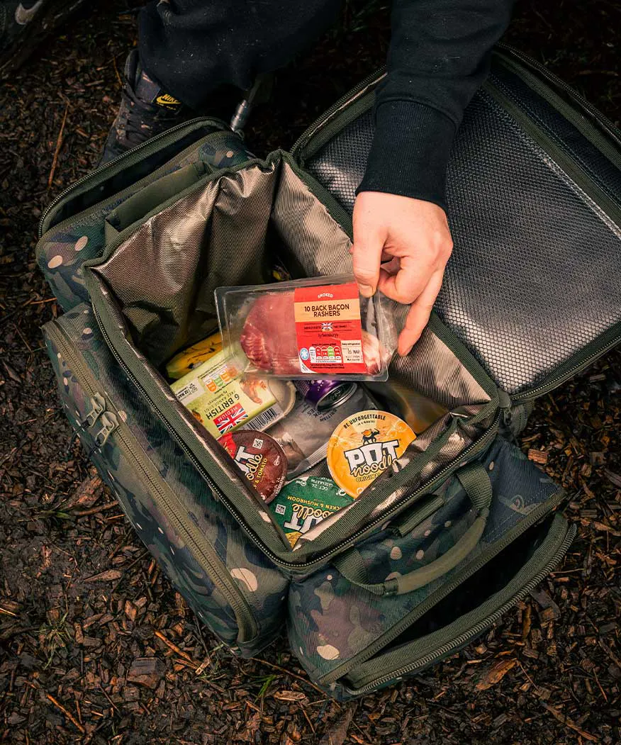 Keywords: Trakker, NXC, Camo, Chilla Session Food Bag, koelbag, kooktas, voedsel, kookgerei, boilies, geïsoleerd, camo, waterdicht