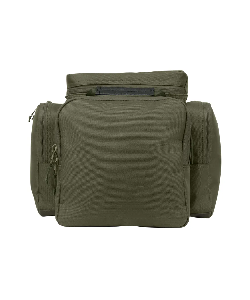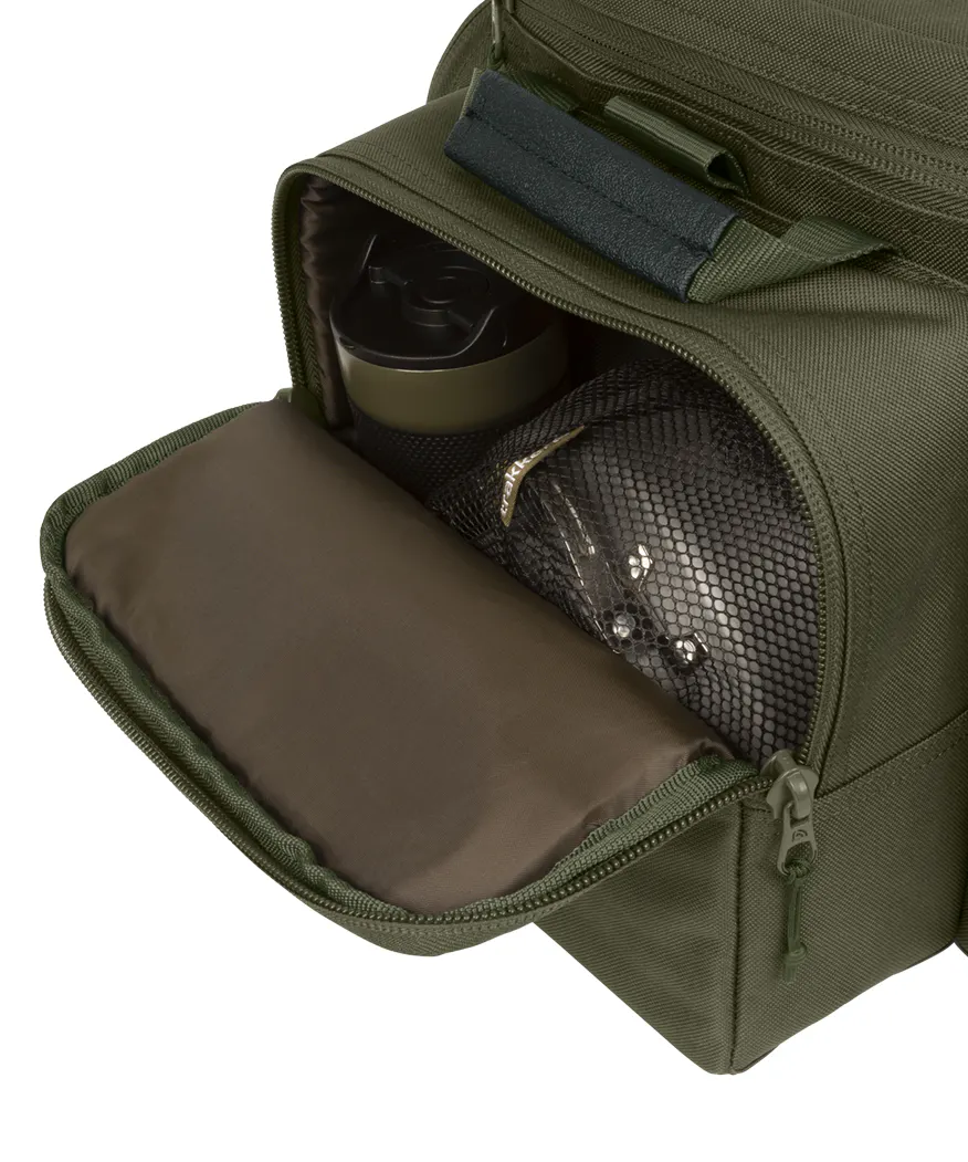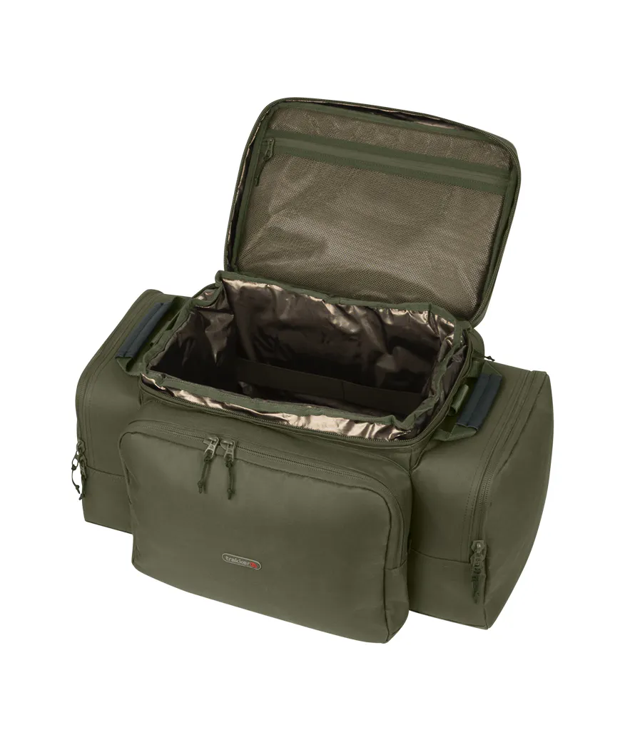 Aan de binnenzijde bevinden zich elastische banden om koelelementen, flessen of voedsel vast te zetten, en een gaasvak met ritssluiting aan de binnenkant van het deksel. De grote buitenvakken bieden volop opbergruimte voor kookgerei, terwijl de zijvakken ruim genoeg zijn voor gasbranders, ketels, potten en pannen.