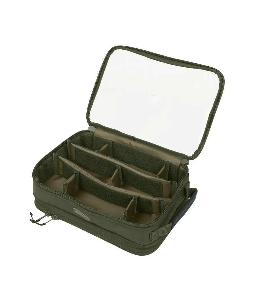 • Grote, aanpasbare tackle- en rig pouch met transparante PVC-deksel