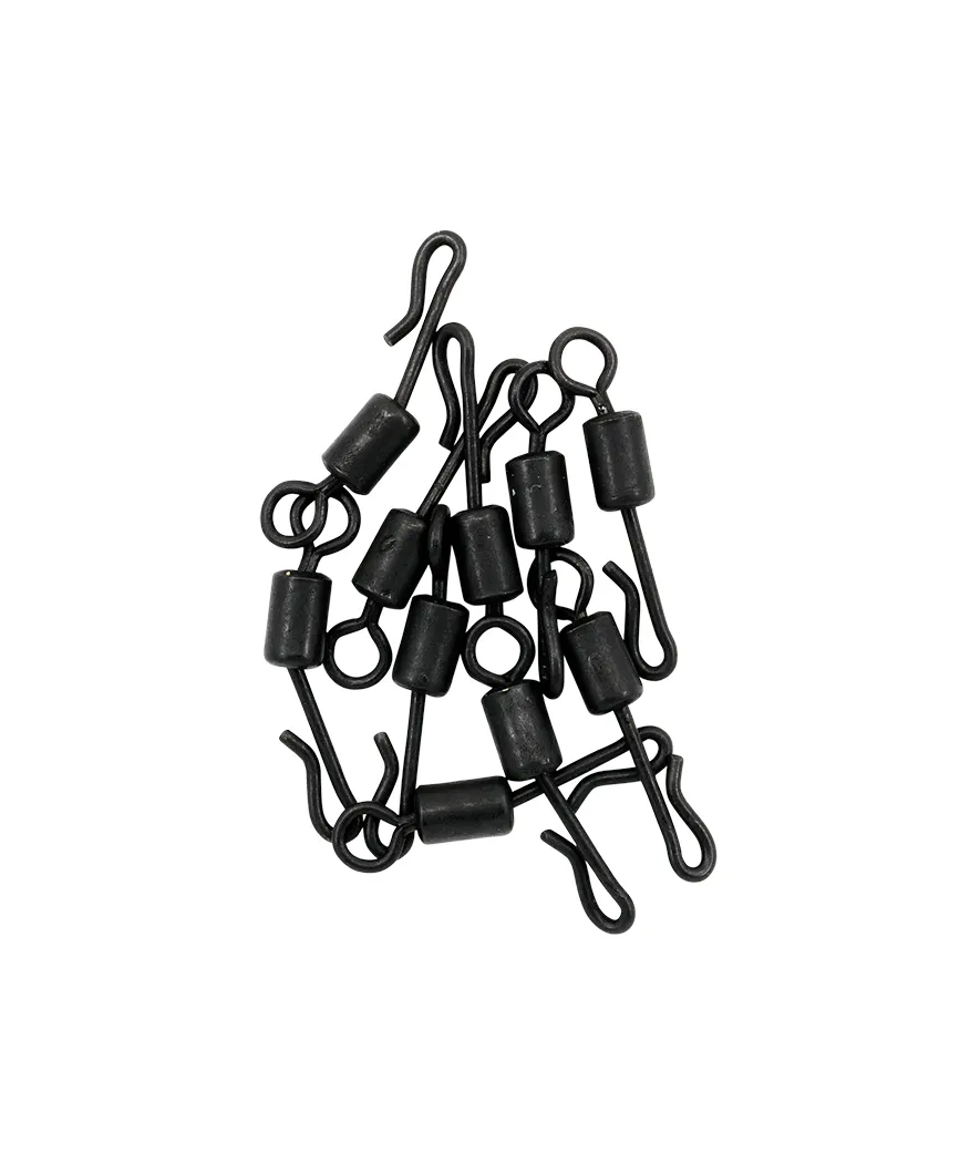 Keywords: Trakker, Quick Change Swivel, Size 8, karpervissen, wartel, quick link, end tackle, rig component, anti glare, matte black, lead clip system