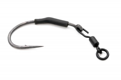 Dankzij de ‘crook’ opening kan de haak eenvoudig op de wartel worden geschoven, zonder gebruik van tang of kracht. Met een stukje krimpkous of een Kicker wordt de verbinding netjes afgedekt en blijft alles stevig op zijn plaats en in de juiste hoek staan.
