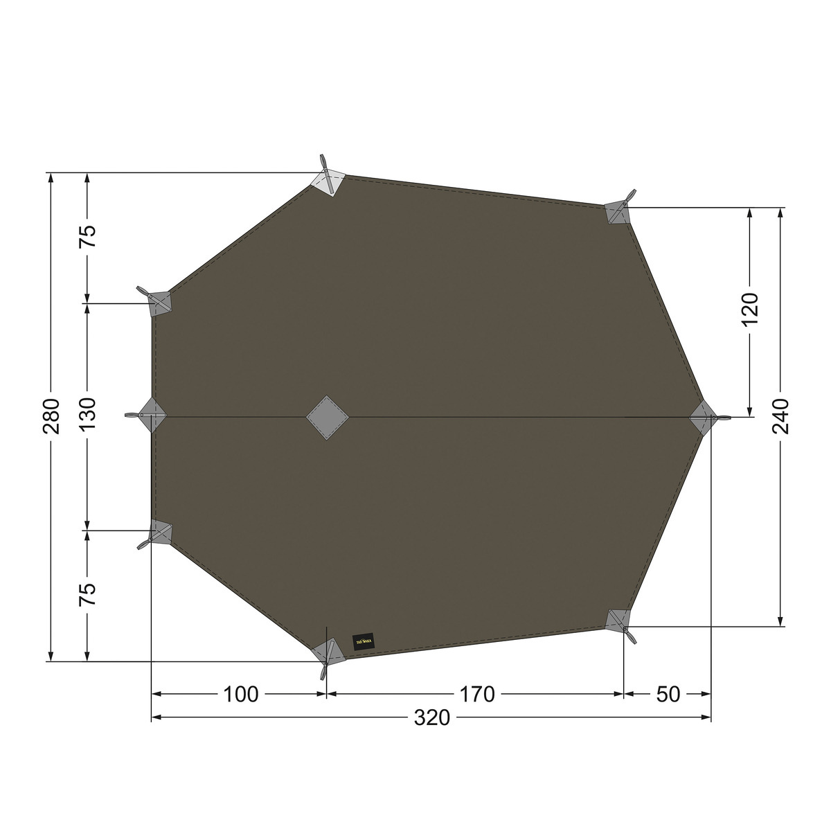De Tatonka Tarp Wing 3 LT is een ultralichte en zeer scheurvaste multifunctionele tarp, gemaakt van siliconen-gecoat polyamide. Dankzij de bevestigings- en afspanpunten kan de tarp op verschillende manieren worden opgezet. Met een formaat van 320 × 280 cm biedt hij betrouwbare bescherming tijdens outdooractiviteiten.
