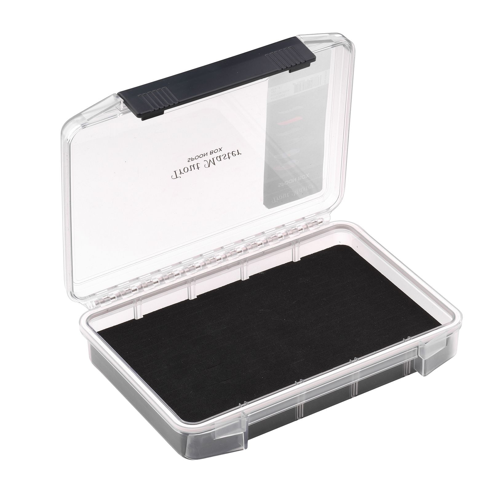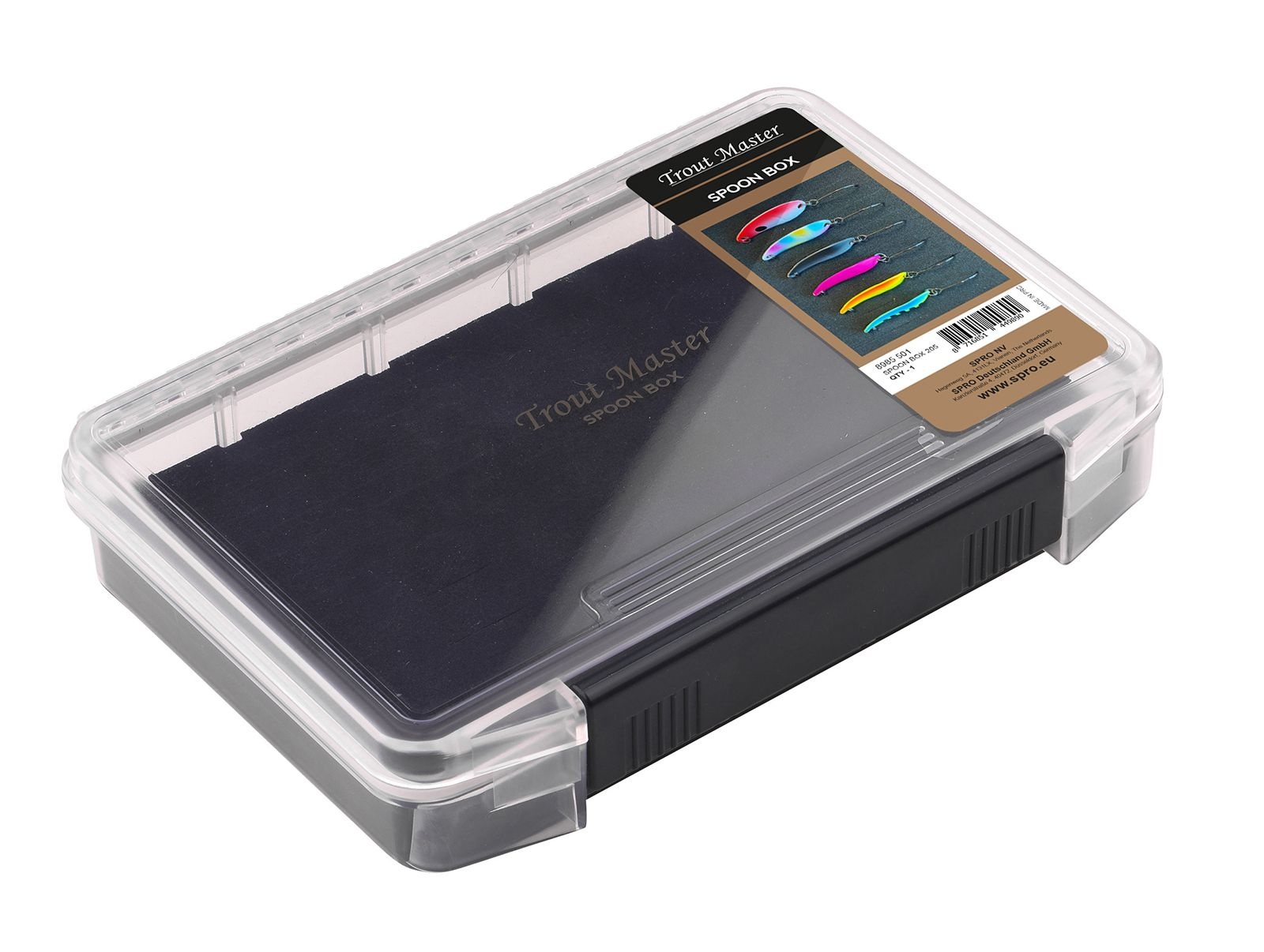 De Spoon Box is voorzien van een semi-zachte EVA foam board t.b.v. het opbergen van klein kunstaas zoals lepeltjes, spinners en plugjes. De box is voorzien van een waterdichte seal en een extra grote sluiting voor optimaal gebruiksgemak.