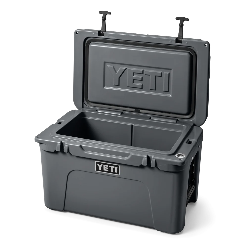 YETI, Tundra 45, charcoal, koelbox, hard cooler, outdoor-gebruik, lekvrij, ijsbehoud, draagbare koelbox, bankside lunch koeler, vis- en proviandopslag, stapelbare droge-mand, bekerhouder-compatibel